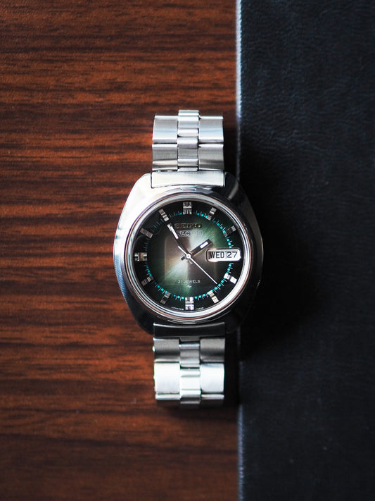 Seiko 5 Actus 7019-7350 Faceted Crystal Green Sunburst Dial