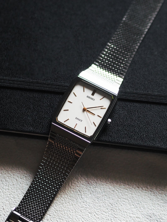 Seiko Dolce 5E61-5A00 Tank Tungsten Carbide White Pinstripe Dial