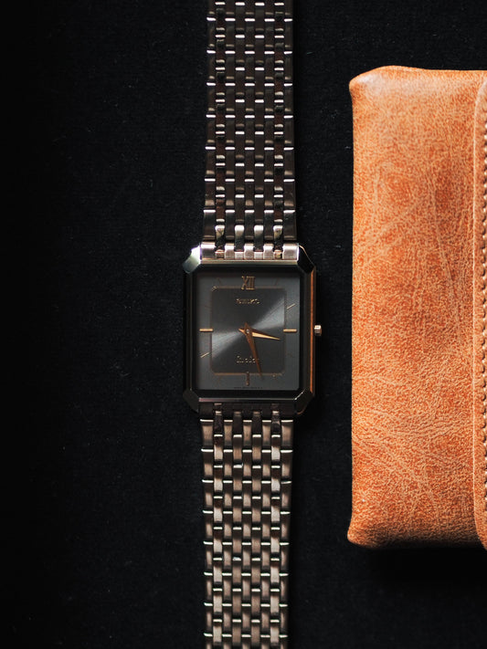 Seiko Dolce 9531-5160 Tank Tungsten Carbide Champagne Pinstripe Dial