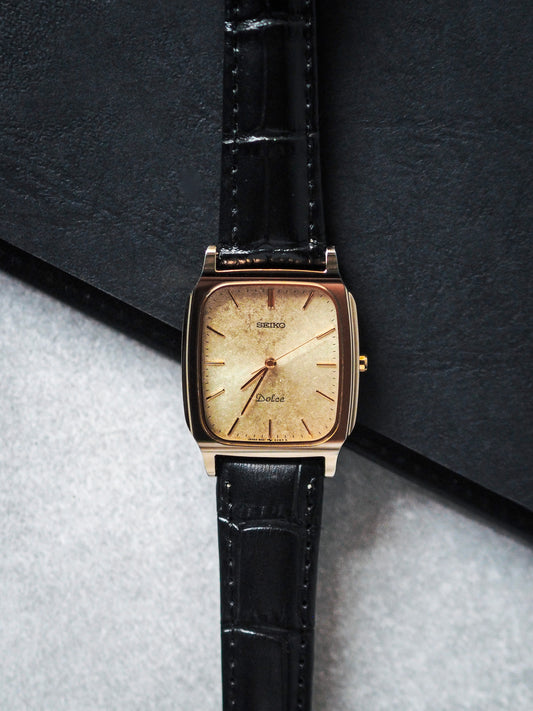 Seiko Dolce 7741-5140 Tank Ceramic Gold Flake Dial