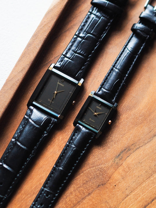 Couple Seiko Dolce 9531-5070 & Exceline 7321-5980 Tank Ceramic Black Dial