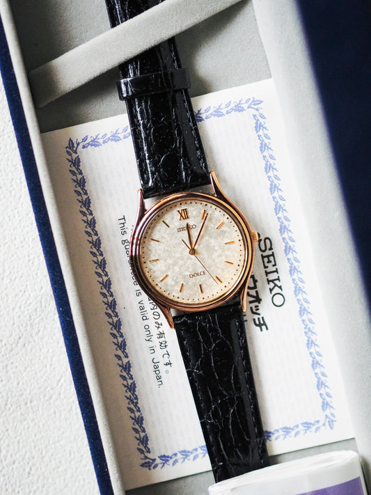 Seiko Dolce 5E31-6070 Gold White Kira-zuri Textured Dial