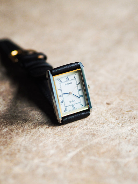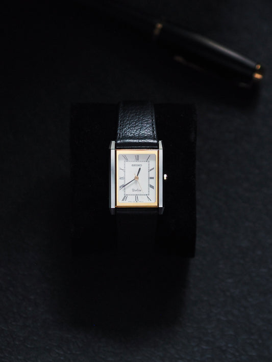 Seiko Dolce 7321-6170 Tank Tungsten Carbide Two Tone Case White Roman Dial