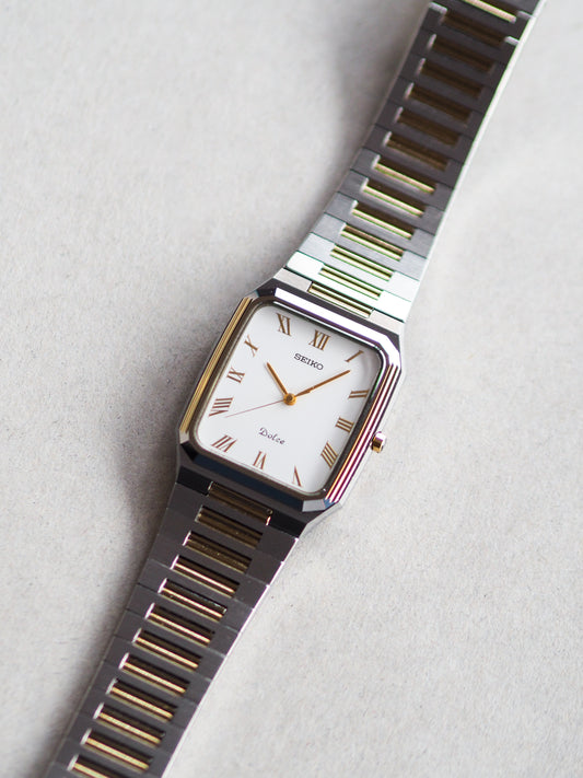 Seiko Dolce 5E31-5B00 Tank Tungsten Carbide Two Tone White Dial