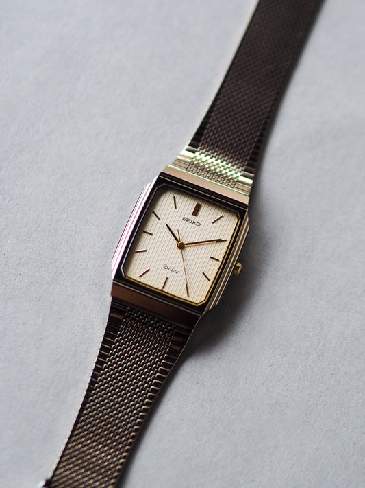 Seiko Dolce 9531-5160 Tank Tungsten Carbide Champagne Pinstripe Dial