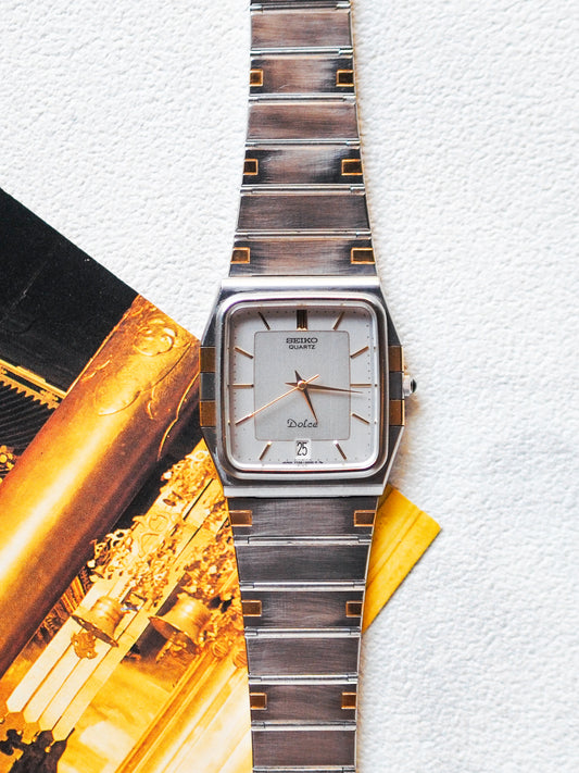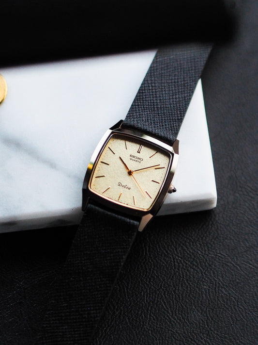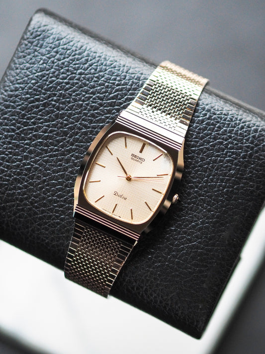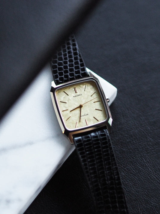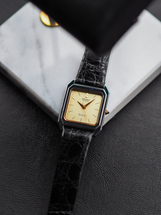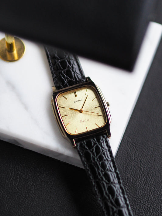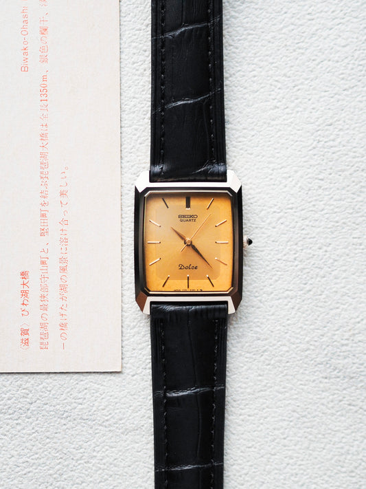 Seiko Dolce 7741-5140 Tank Ceramics Gold Flake Dial