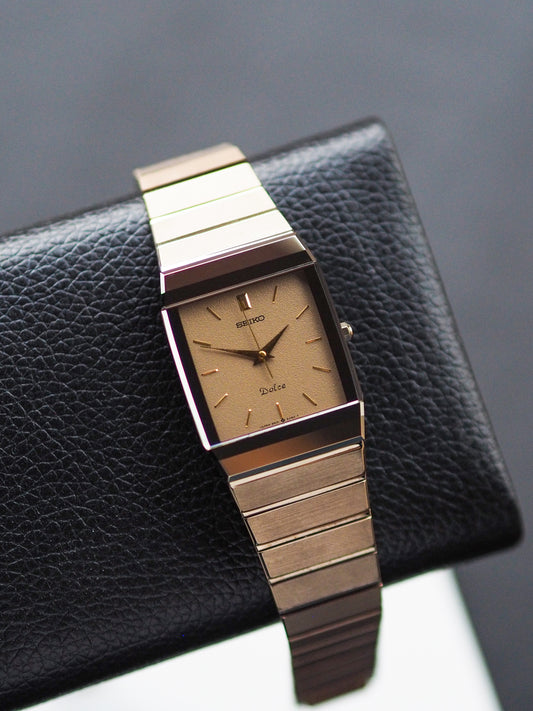 Seiko Dolce 9531-5060 Tank Tungsten Carbide Brown Sand Textured Dial