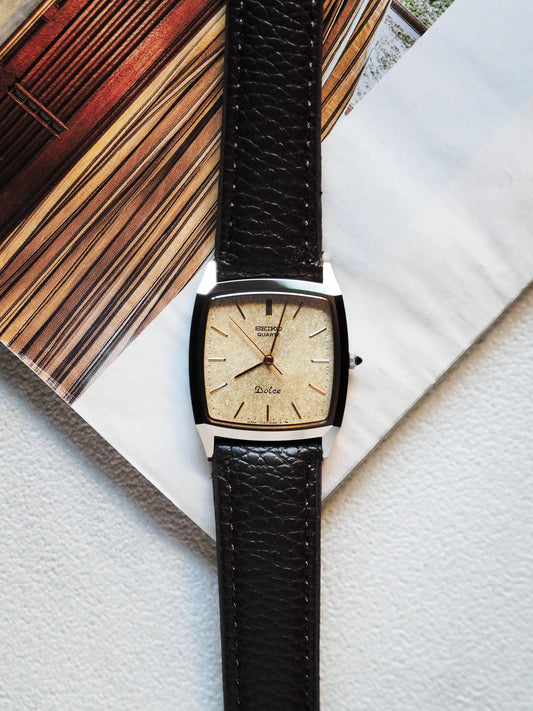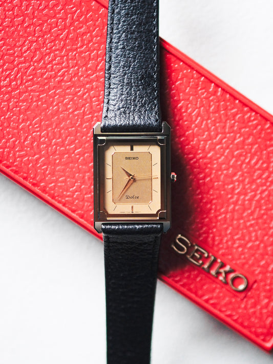 Seiko Dolce 8N41-5140 Tank Tungsten Carbide Creamy Sand Textured Dial