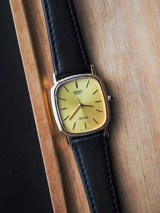 Seiko Dolce 7741-5120 Tank Tungsten Carbide Gold Flake Dial