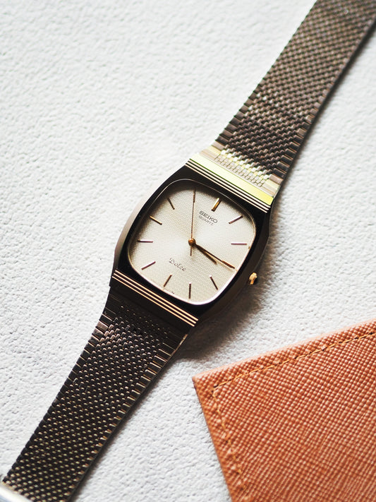 Seiko Dolce 7731-5091 Tonneau Tungsten Carbide Gold Textured Dial