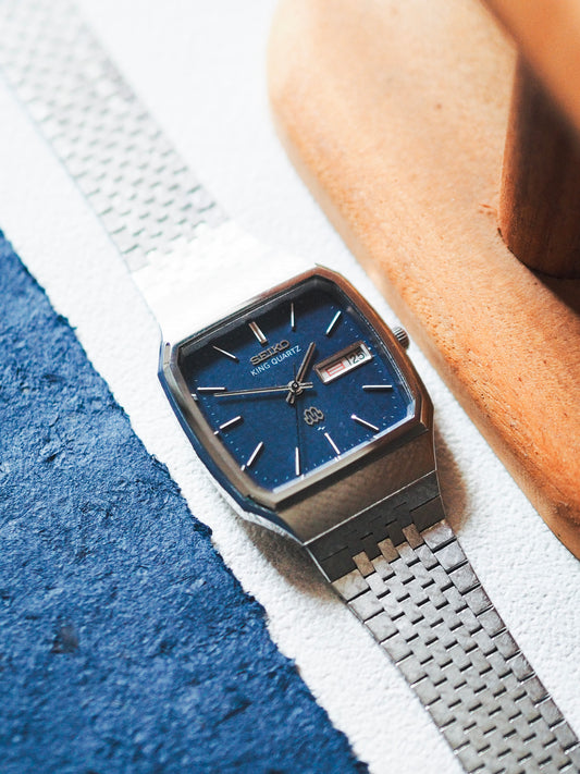 Seiko King Quartz Twin Quartz 9723-5010 Blue Snowflake Textured Dial