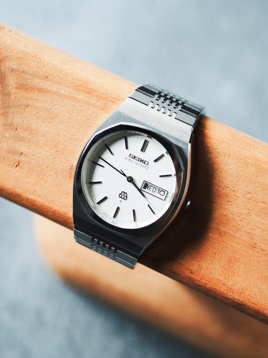 Seiko King Quartz Twin Quartz 9923-7010 White Bamboo Textured Dial