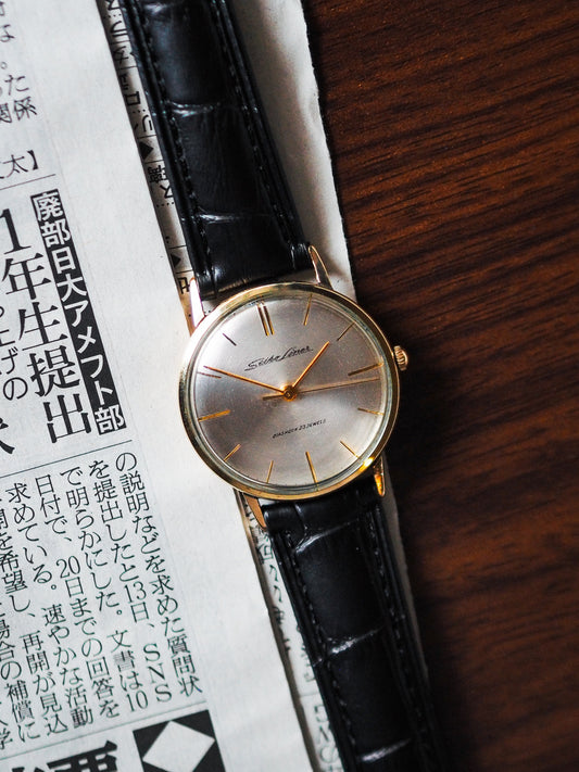 Seiko Liner J14069 Gold Filled Silver Sunburst Radial Line Dial