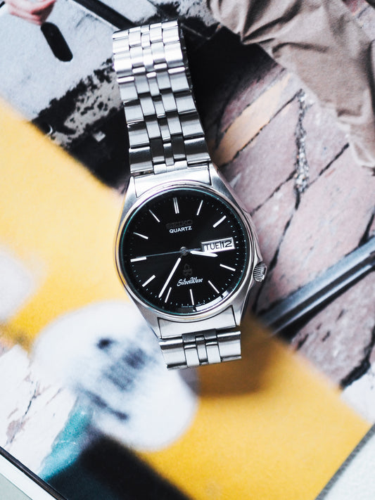 Seiko Quartz 8229-703B Silverwave Black Sunburst Dial
