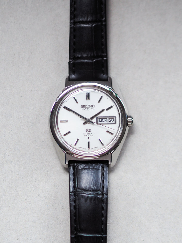 This 61GS from 1969 is a simple yet stunning example of a vintage Grand Seiko timepiece. Great design, outstanding craftsmanship, and expert-level finishing come together to create a wristwatch that exudes high quality in both hand and on the wrist. Its high-beat movement is a feature not found in all vintage Grand Seikos.
