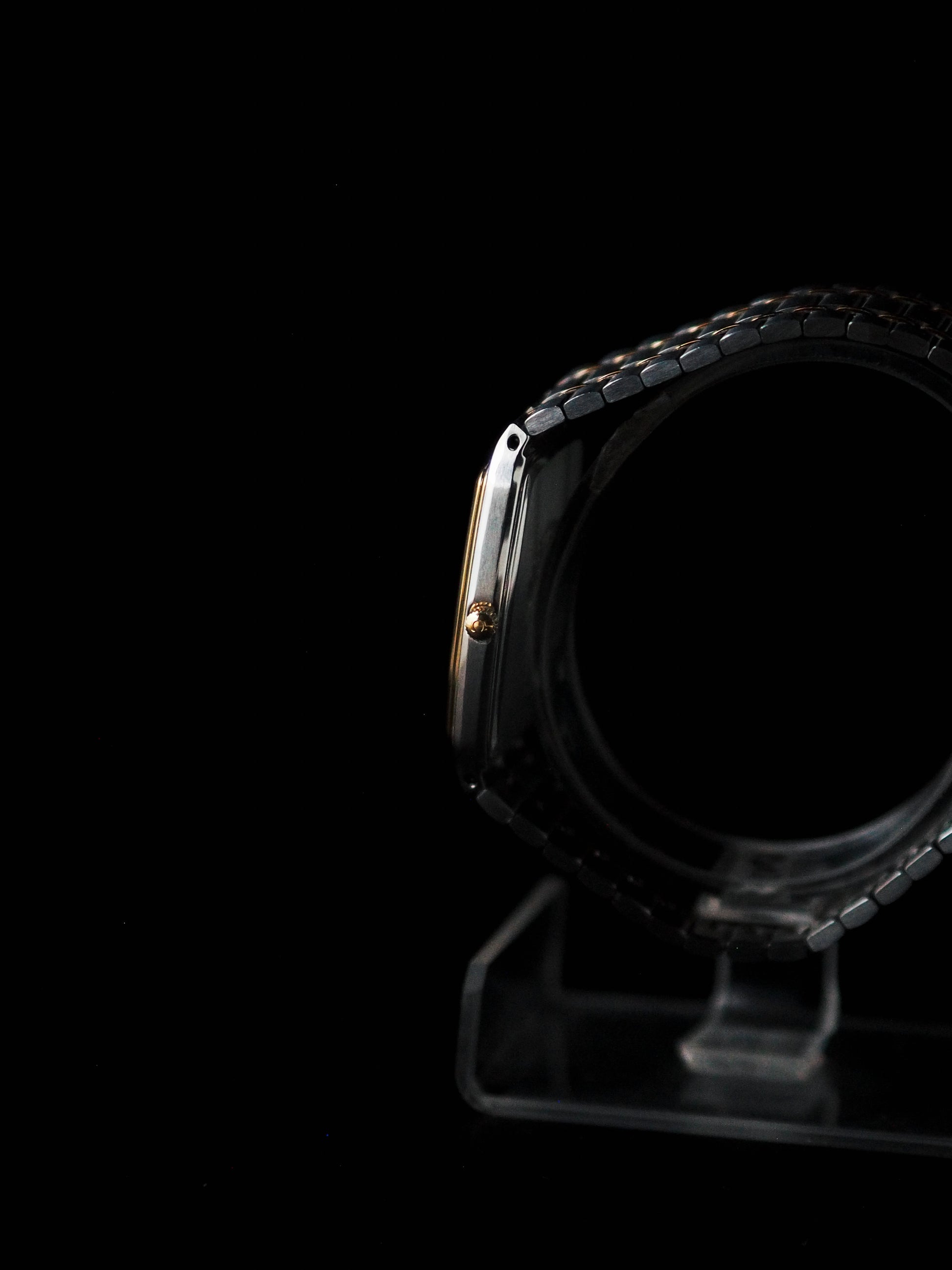For any Omega enthusiast, this Omega Seamaster quartz tank with a two-tone dial is one of a highly collectible item.