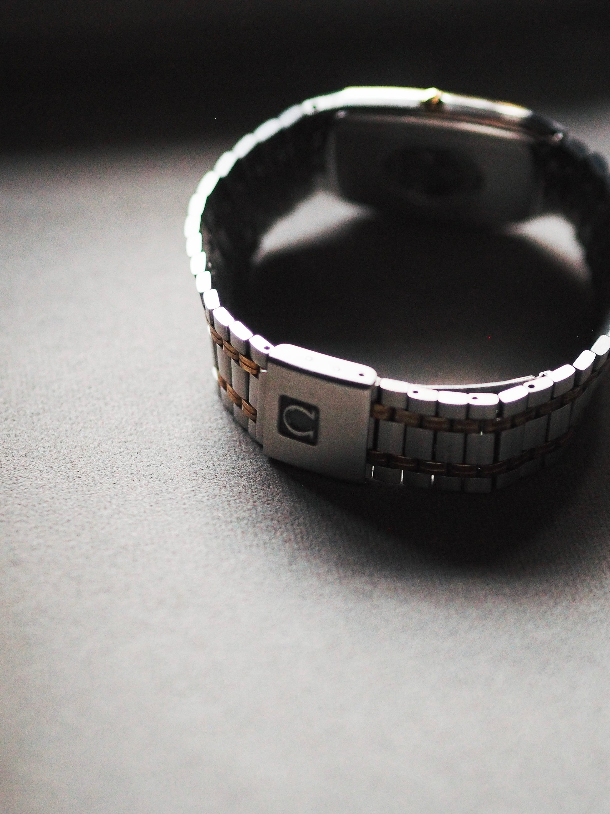 Features : two tone case and bracelet, collectible Omega Seamaster tank