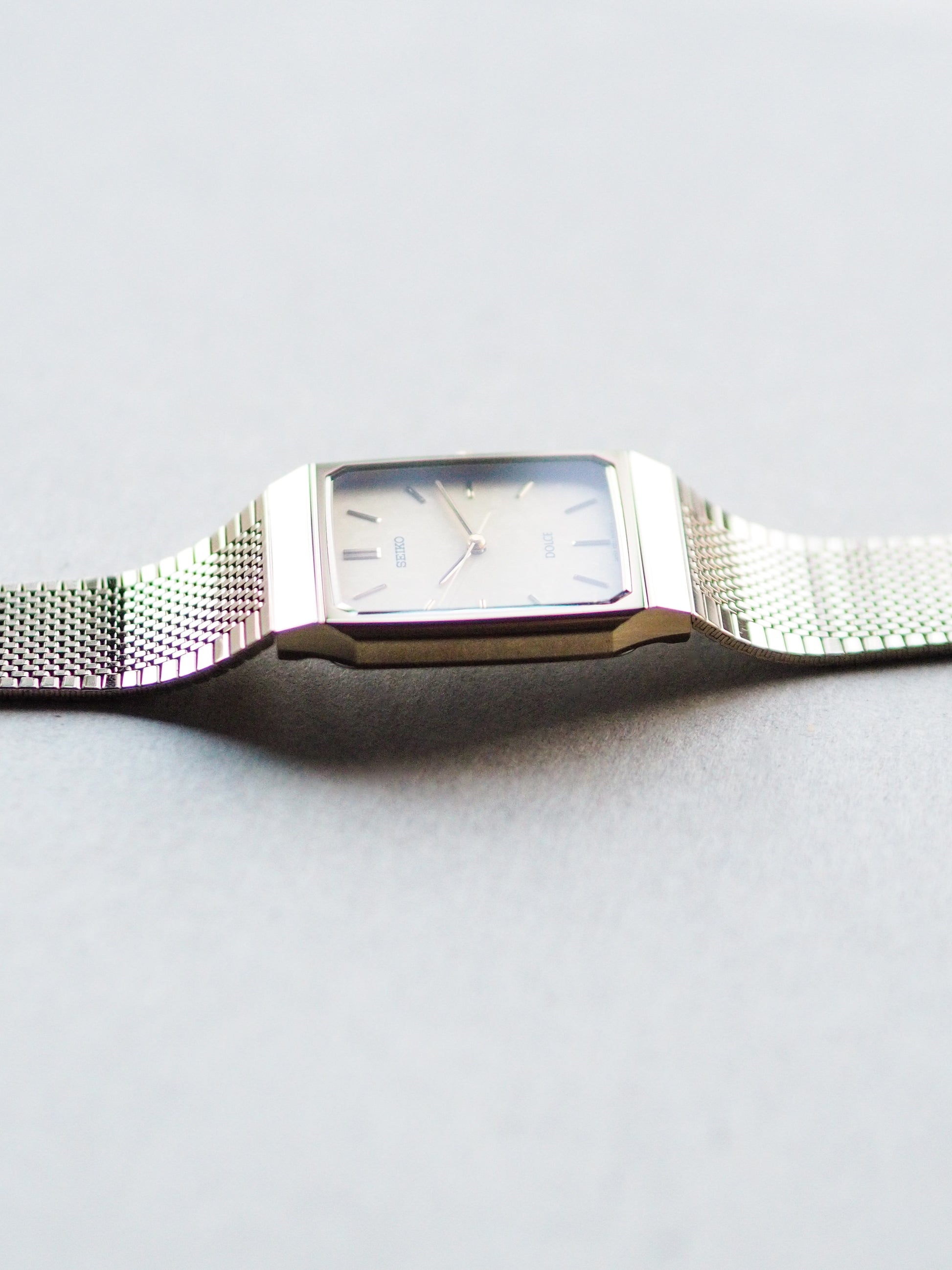 The tungsten carbide case on this vintage Seiko Dolce Tank carries an impressive hardness rating of 2600Hv, harder than sapphire and second only to diamond. This makes it exceptionally resistant to scratches and everyday wear.