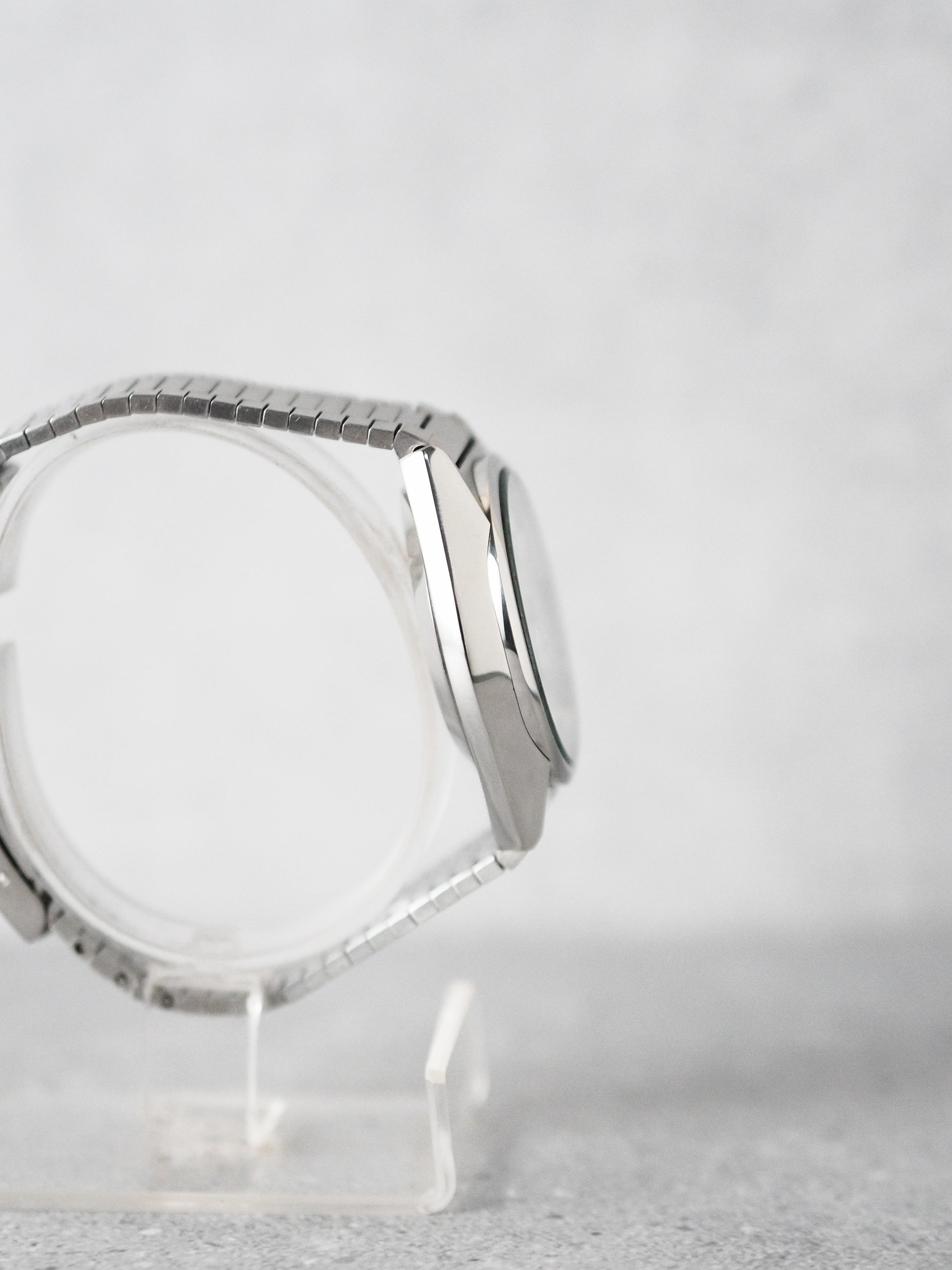 The 4843 movement has an accuracy of ±5 seconds per month, making it a high-accuracy quartz of its era, positioned just below the Quartz V.F.A. when it was launched. The 4843 was only used for three years before being replaced by the 9943 movement in 1978. It also has a unique feature that the seconds hand jumps ahead 5 seconds when you pull the crown to adjust the time.