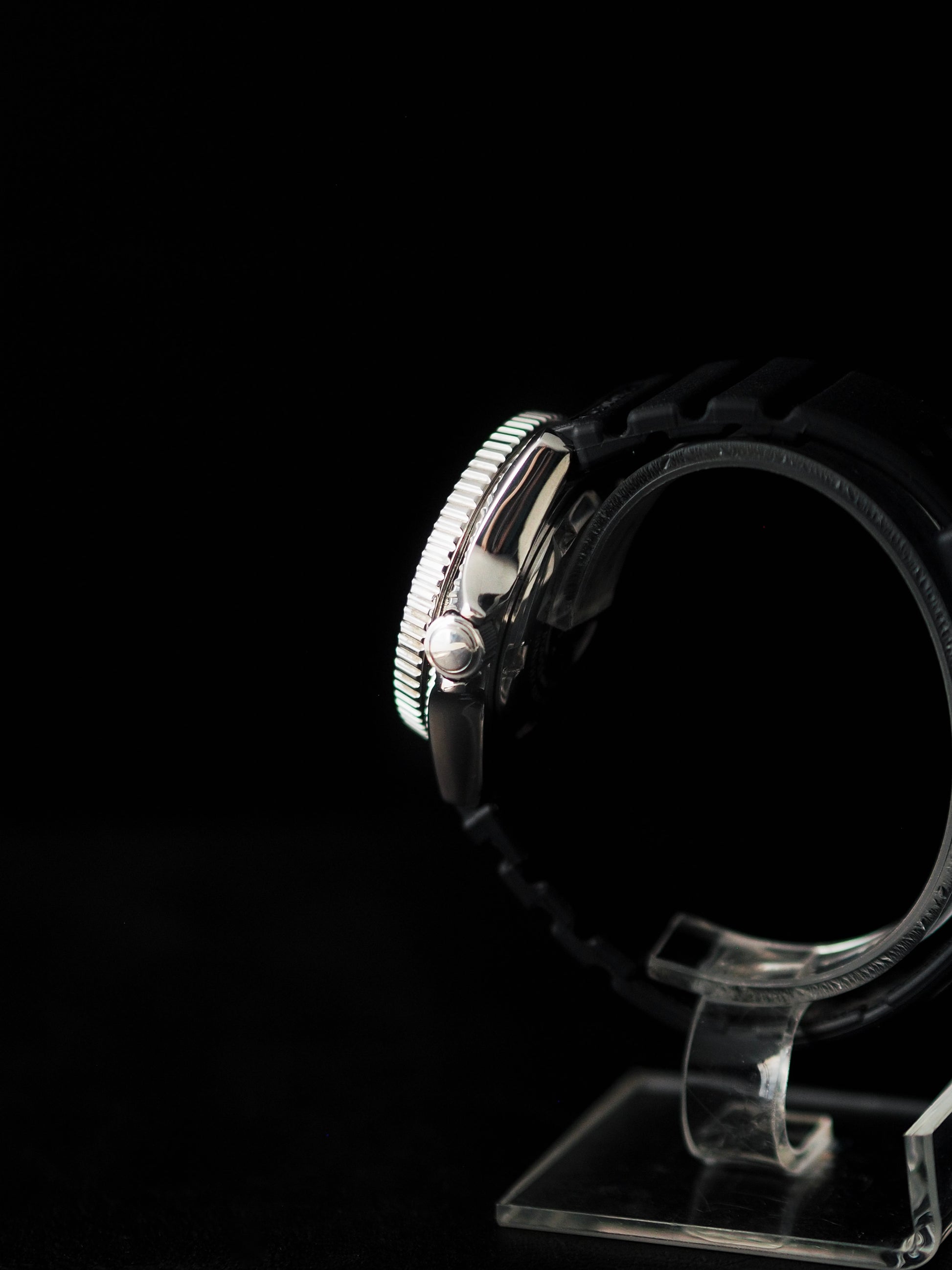 Rated with a water resistance of 150m, the watch boasts extra water resistance with its screw-down crown and case back, making it suitable for swimming during its production period.