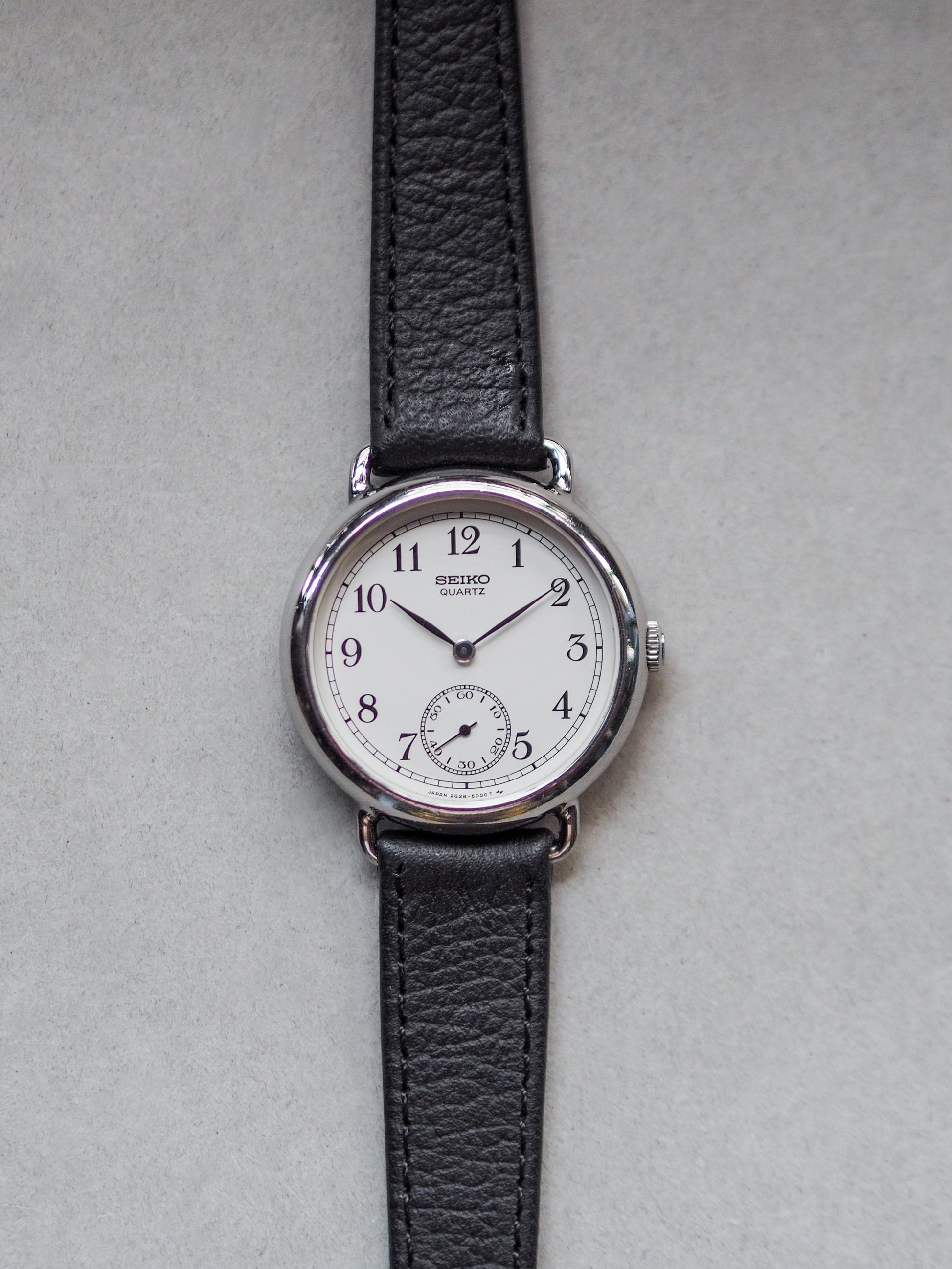 This Seiko 2G28-6000 from 1984 is a beautiful classic that draws inspiration from the renowned 1913 Seiko Laurel, known for its iconic sub-seconds dial and numeric indices. This model pays homage to that design, featuring a sub-seconds dial positioned just above the 6-hour marker, reminiscent of Seiko's early wristwatch legacy.
