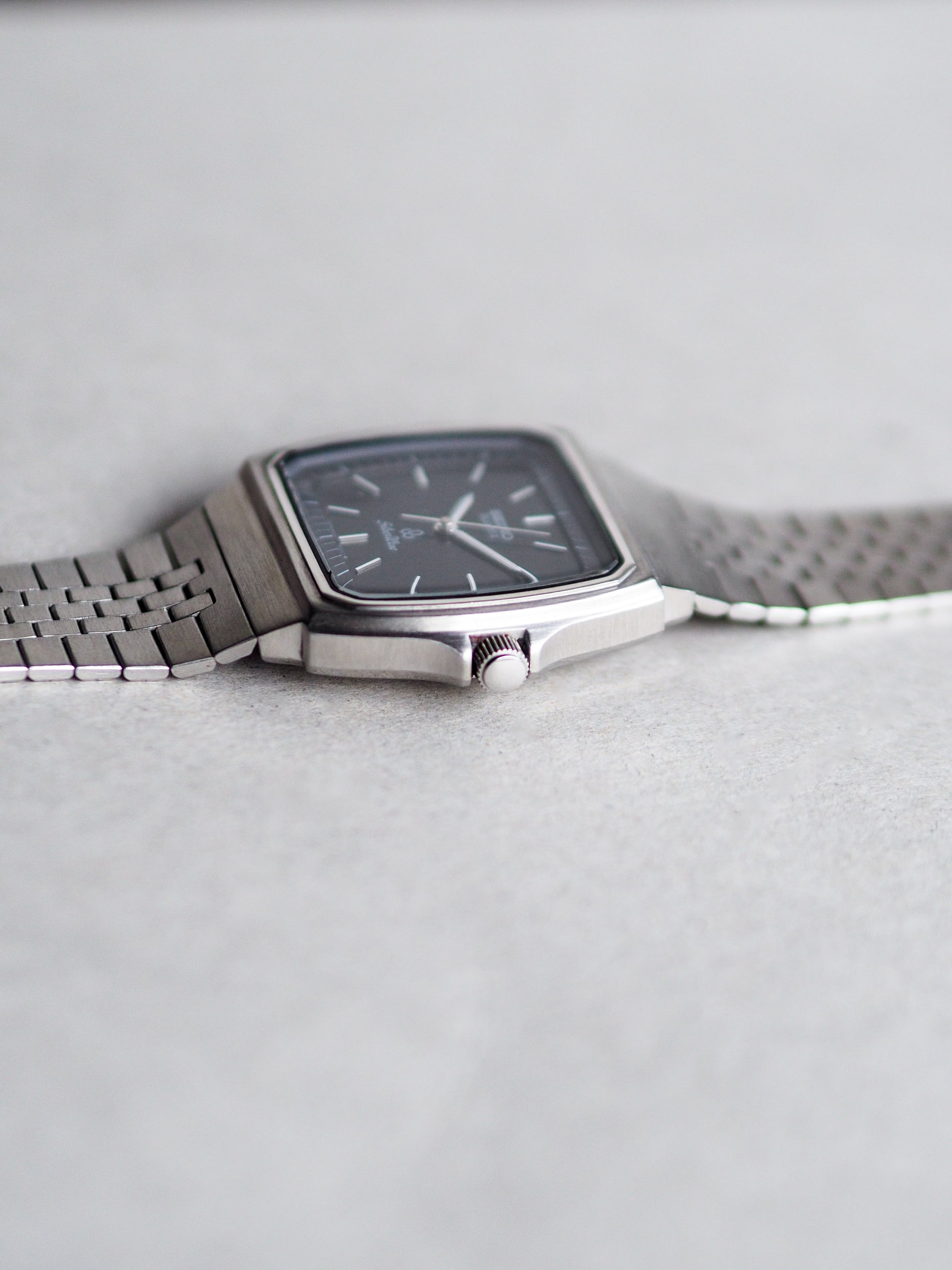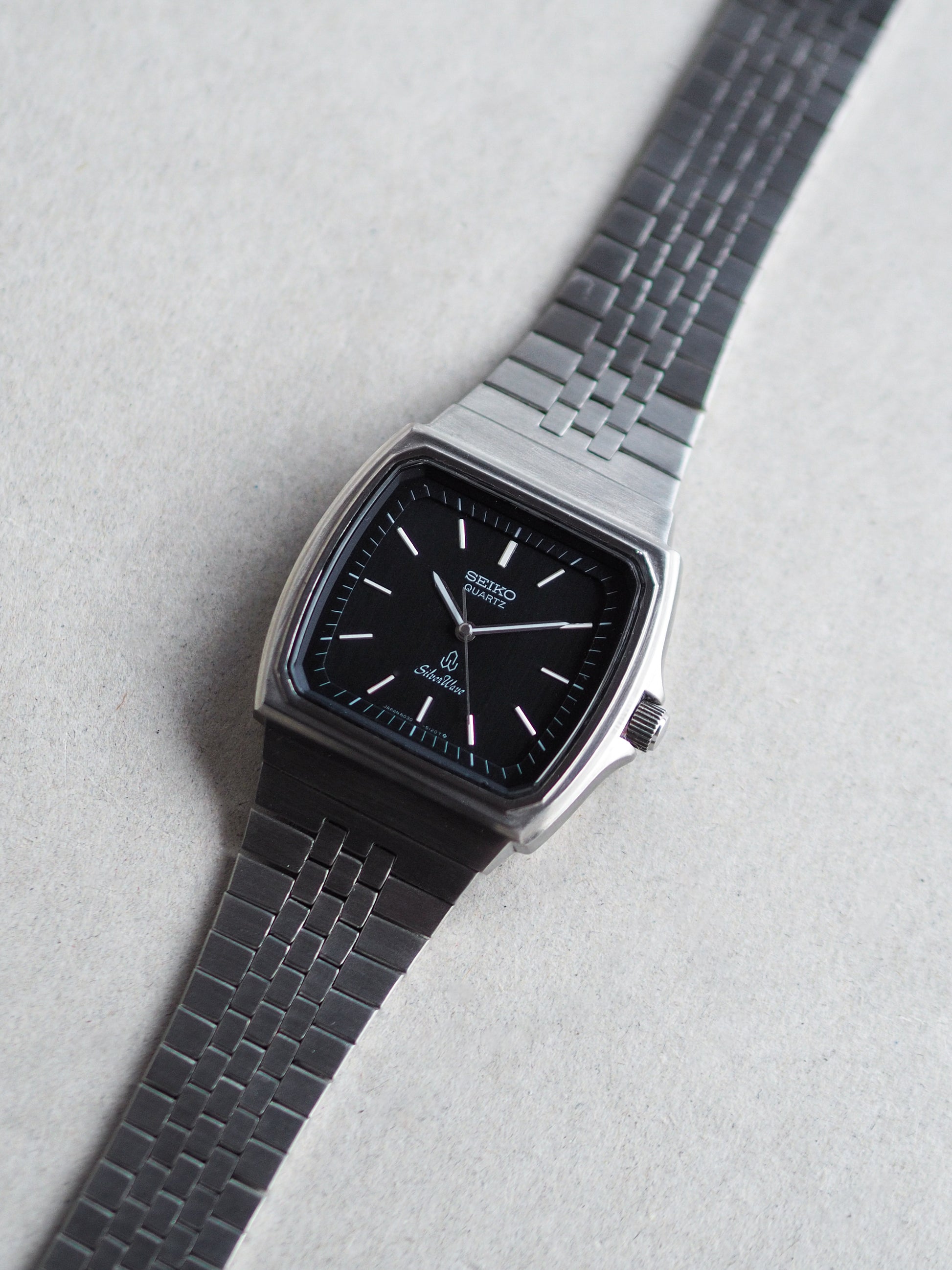 Seiko Quartz 6030-5140 Silverwave TV Shape Black Metallic Dial