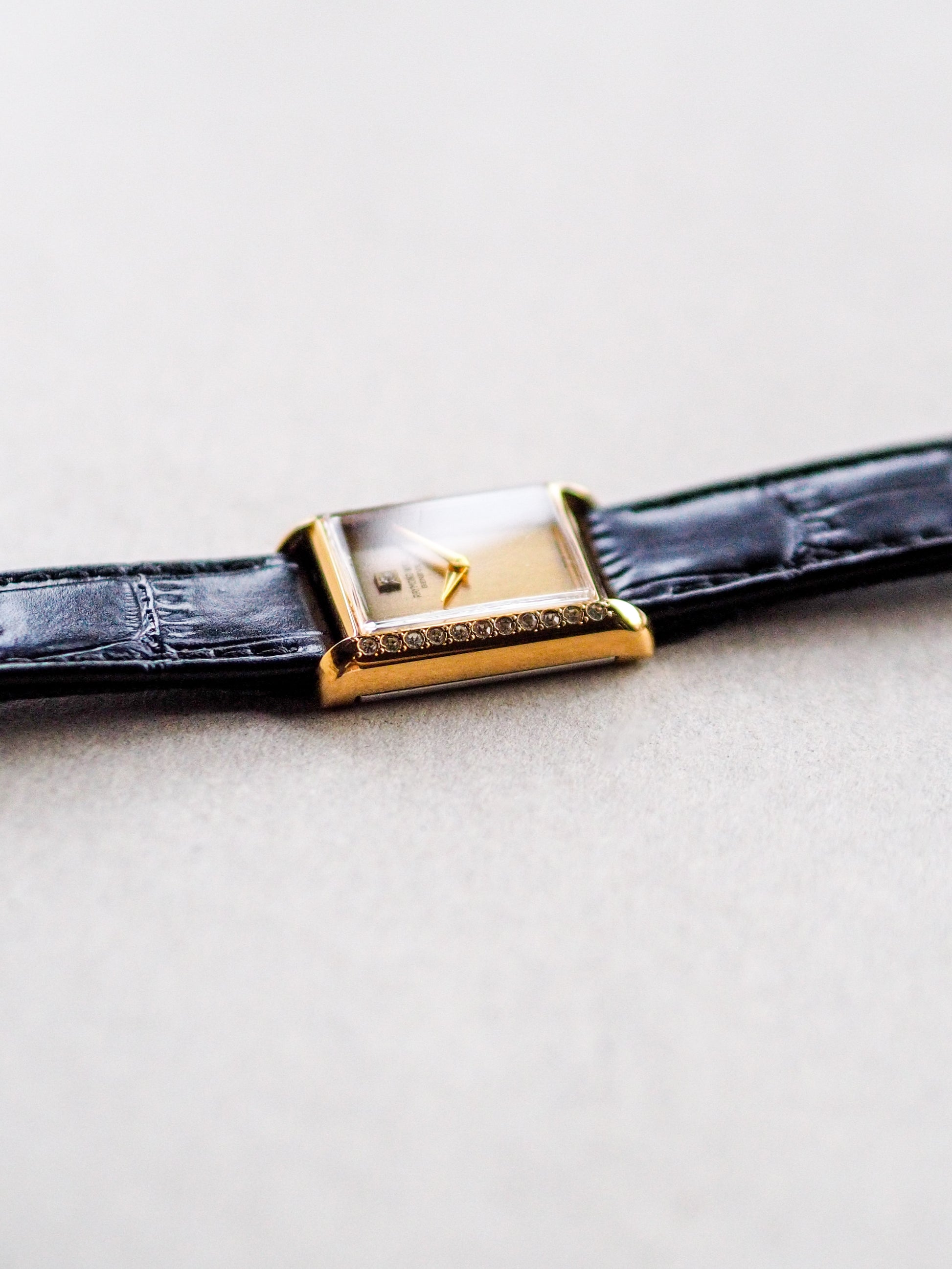 Measuring 22mm x 30mm, this watch has ideal vintage tank proportions. The diamond set bezel adds presence on the wrist, giving it a luxurious appearance reminiscent of the classic Cartier Tank Must de aesthetic.