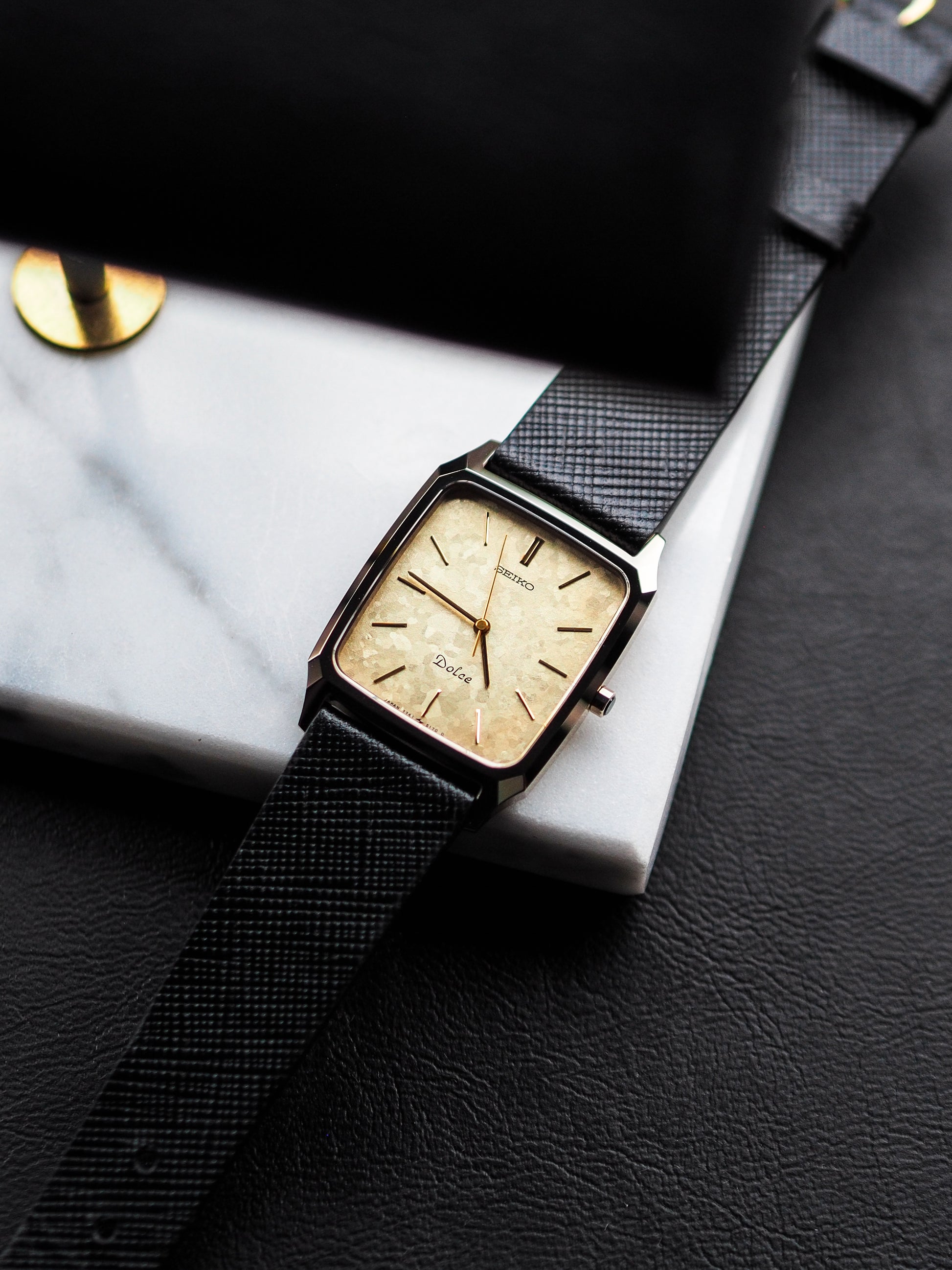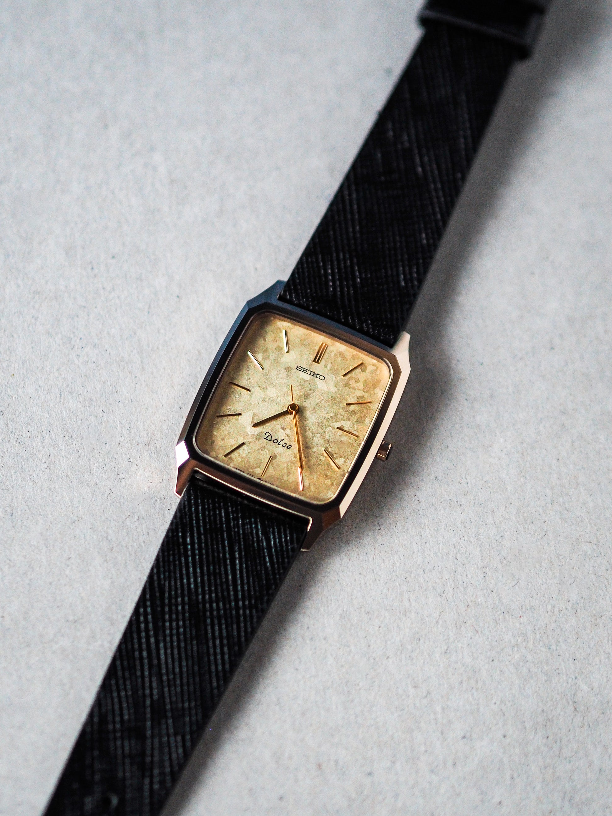 Seiko Dolce 7741-5140 Tank Ceramics Gold Flake Dial