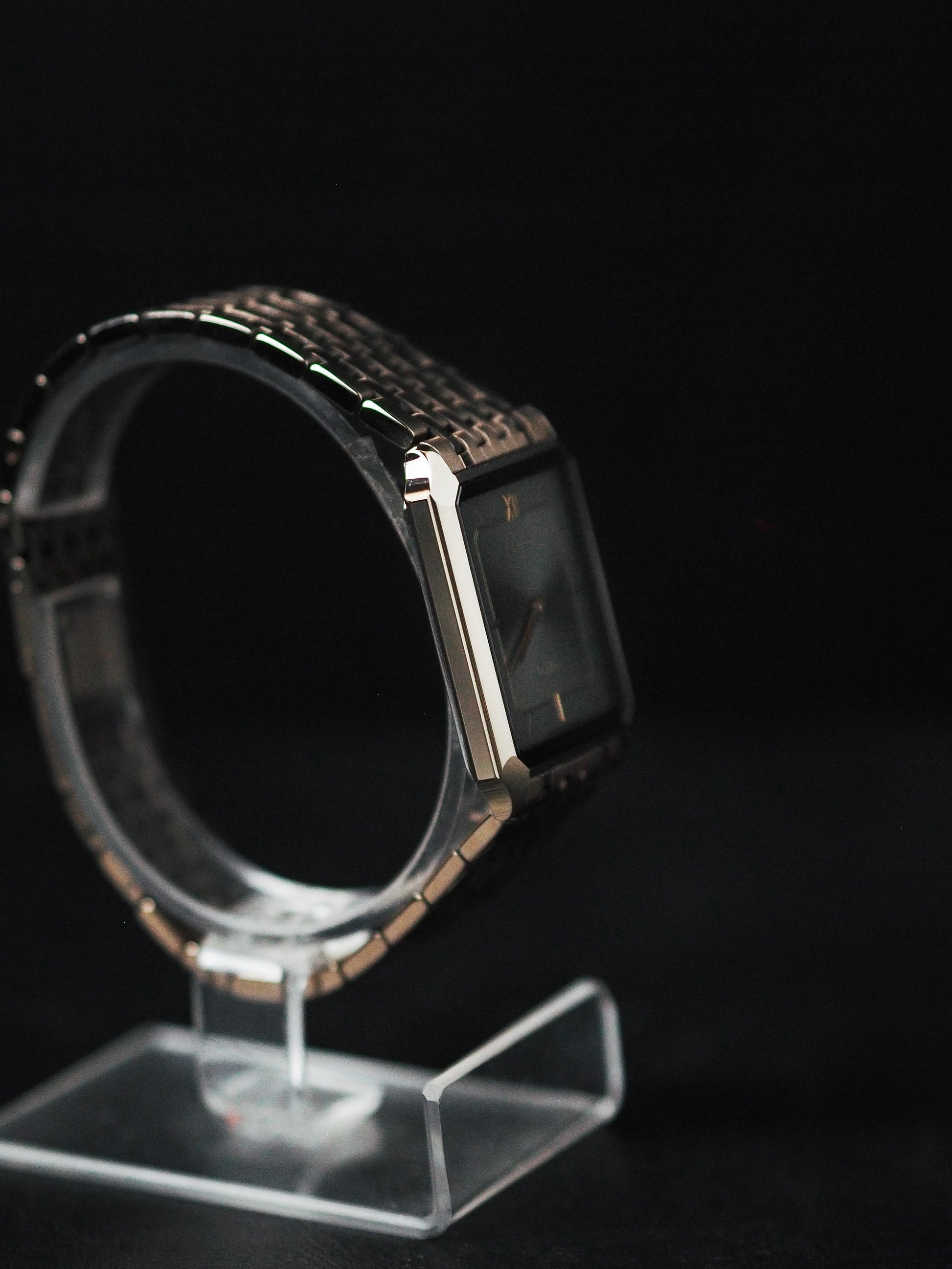 Completing its luxury look is the integrated links design bracelet, adding to its allure as a vintage dress watch. Despite being produced in 1991, this rare find maintains its very good condition, thanks to the use of tungsten carbide material in its case. With a hardness of 2600Hv, tungsten carbide is harder than sapphire and second only to diamond, ensuring lasting durability and timeless elegance.