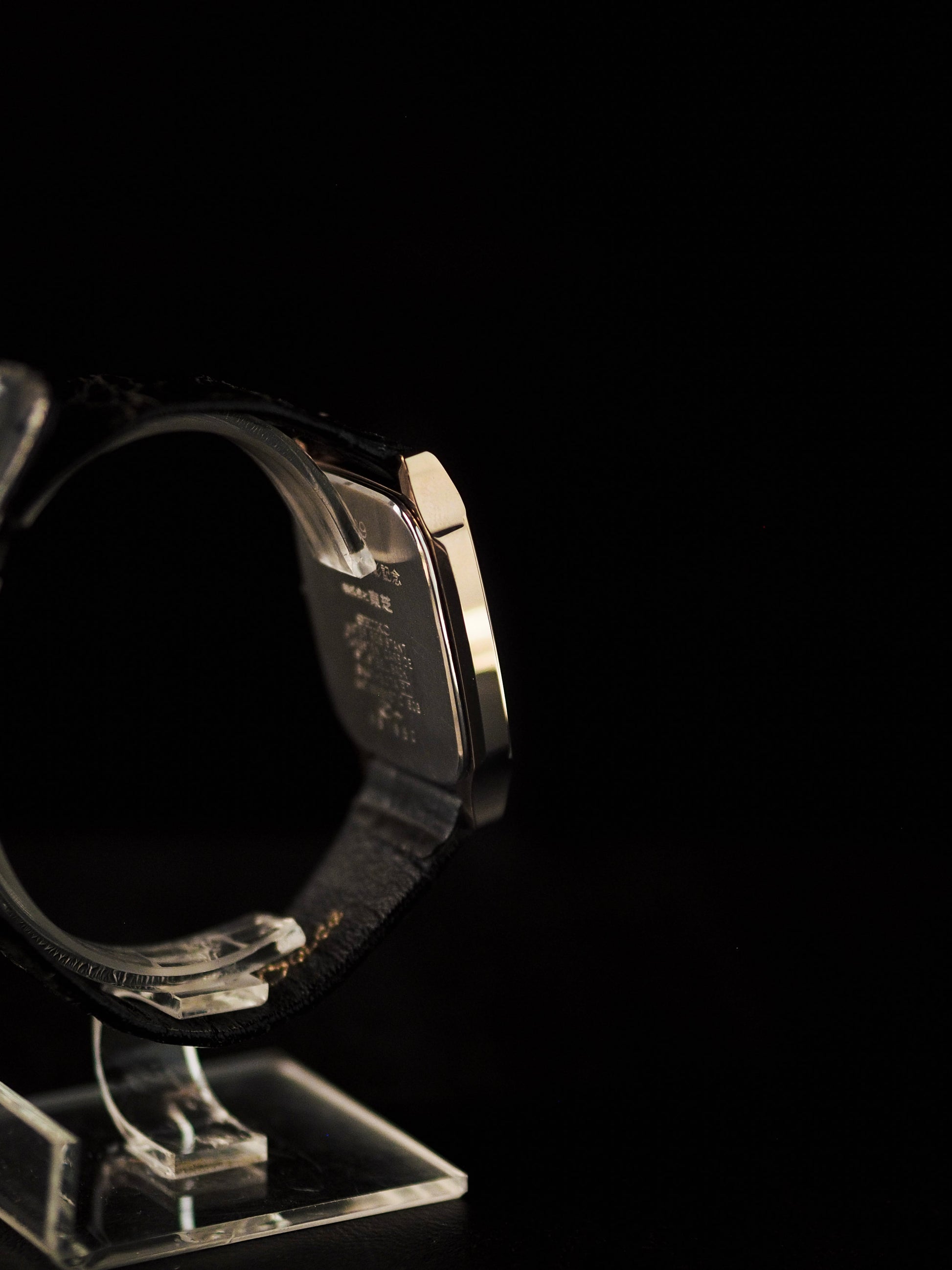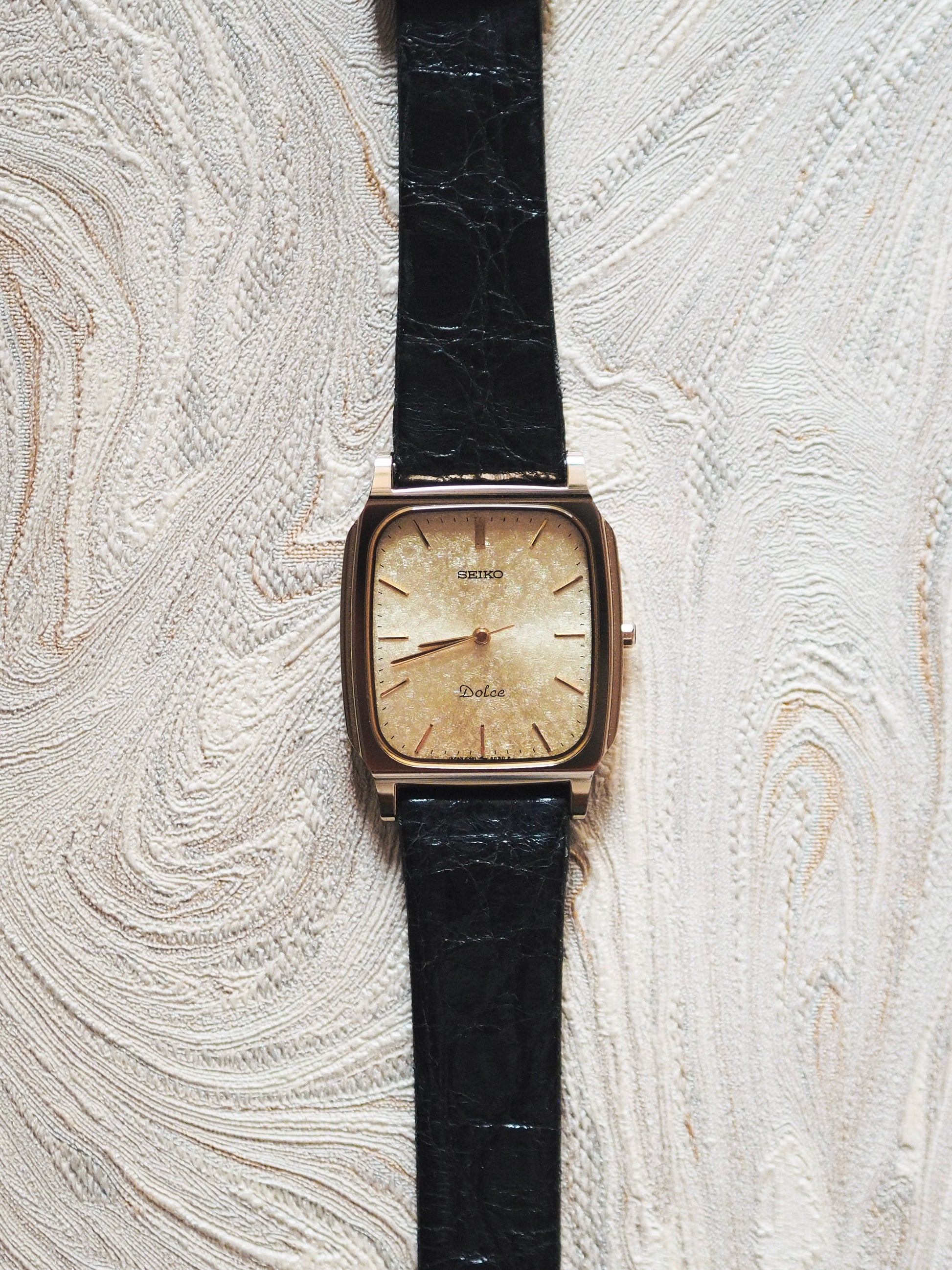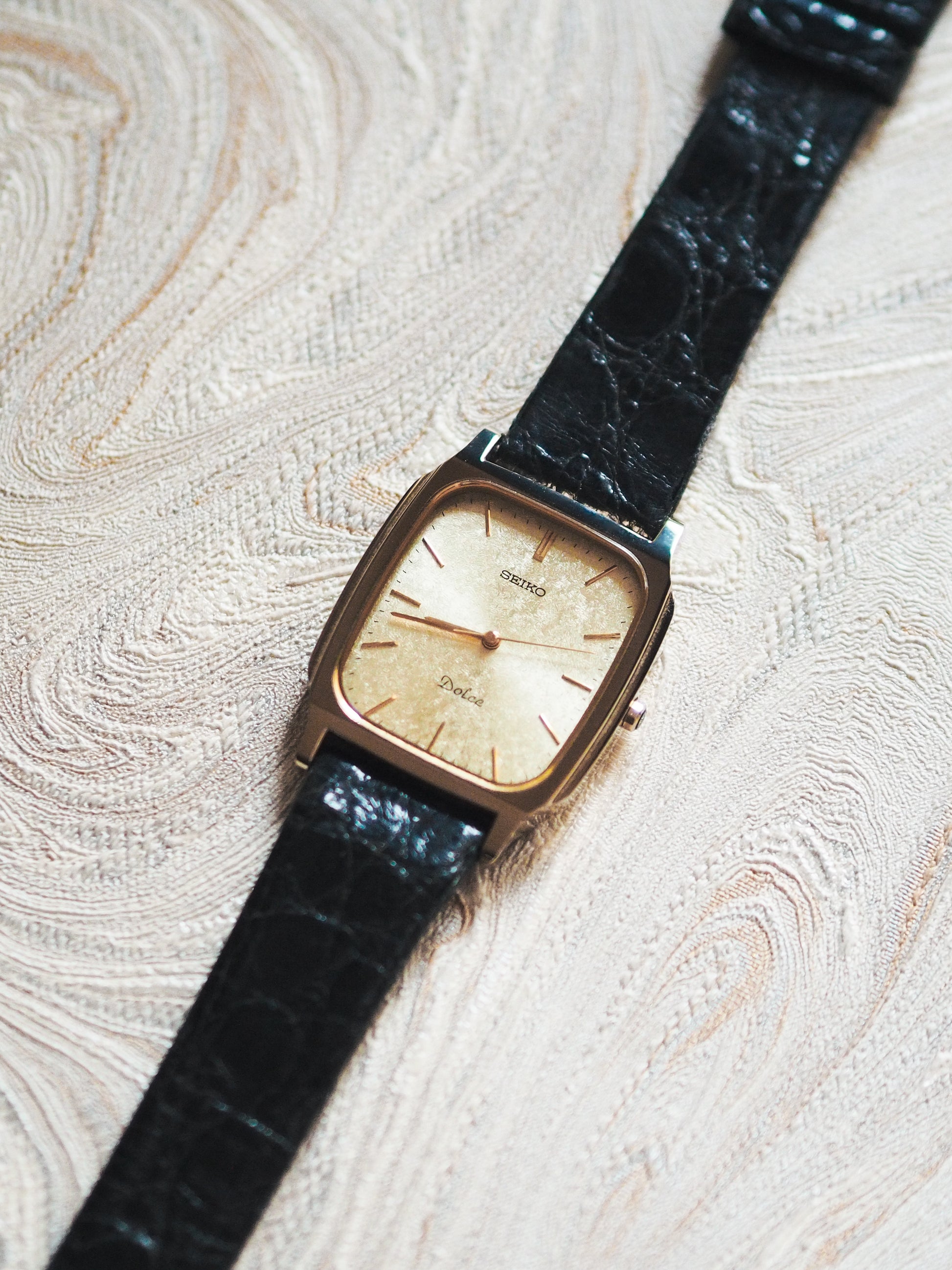 This rectangular Dolce houses the 8N41 movement with a hacking system, offering accuracy within +/- 1 second a day or +/- 20 seconds a year. It remains an accurate quartz movement even today.