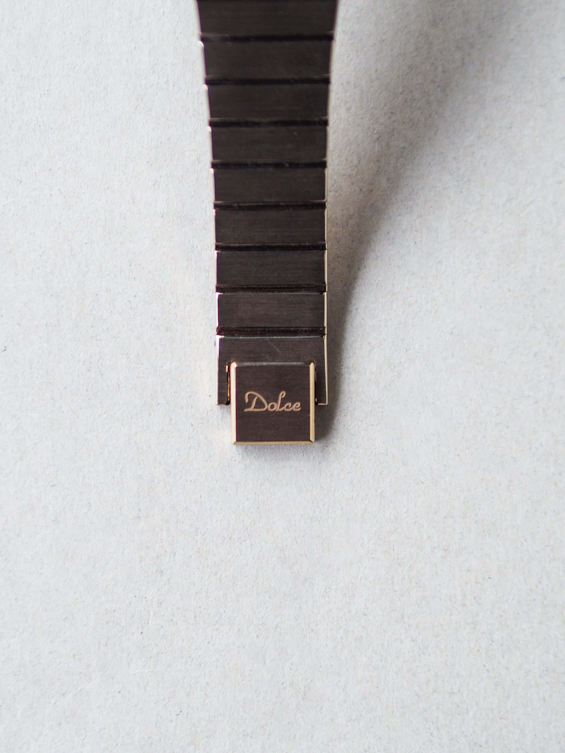 This vintage Seiko Dolce Tank from 1987 exemplifies both elegance and durability, featuring a tungsten carbide case with an impressive hardness of 2600Hv—far more scratch-resistant than sapphire and second only to diamond.