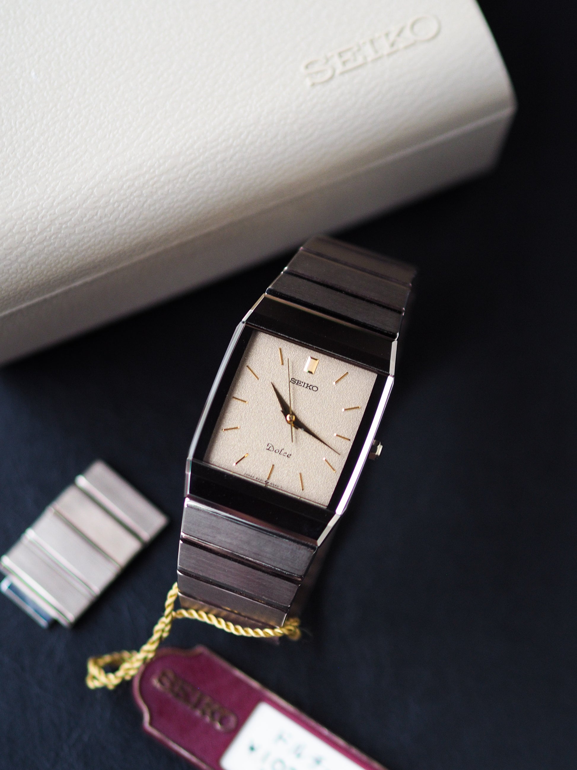 Seiko Dolce 9531-5060 Tank Tungsten Carbide Brown Sand Textured Dial
