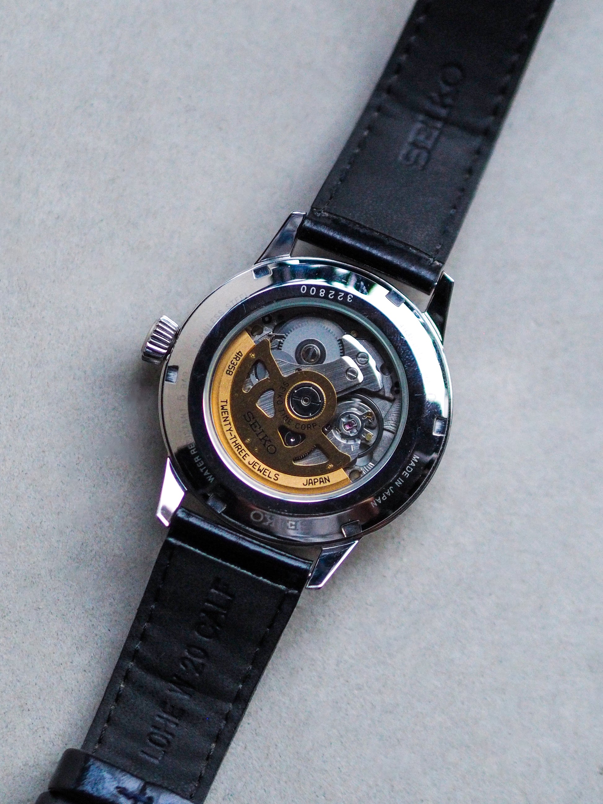 The stainless steel case measures 40.5mm in diameter, offering a balanced presence on the wrist that works well for both casual and dress wear. Powering the watch is Seiko’s reliable 4R35 automatic movement, featuring hacking and manual winding, and running in normal working condition.