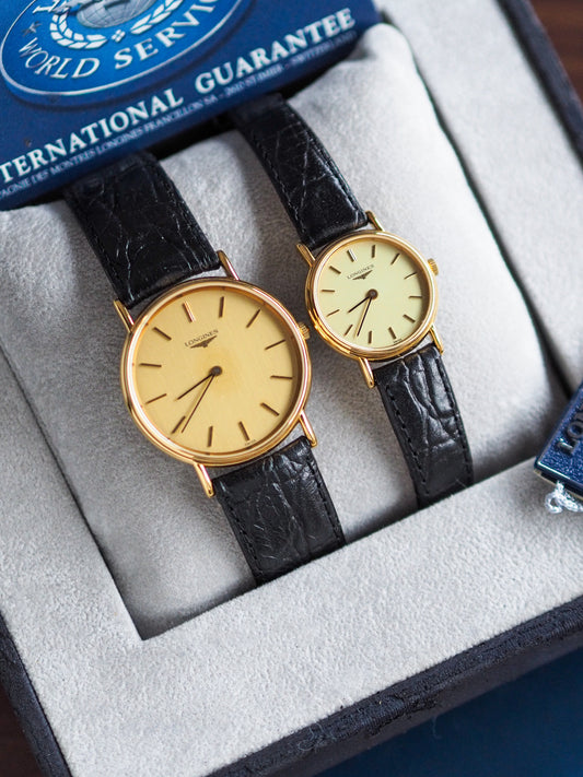 Couple Longines La Grande Classique Quartz L4.637.2 L4.137.2 SGP Gold Champagne Dial