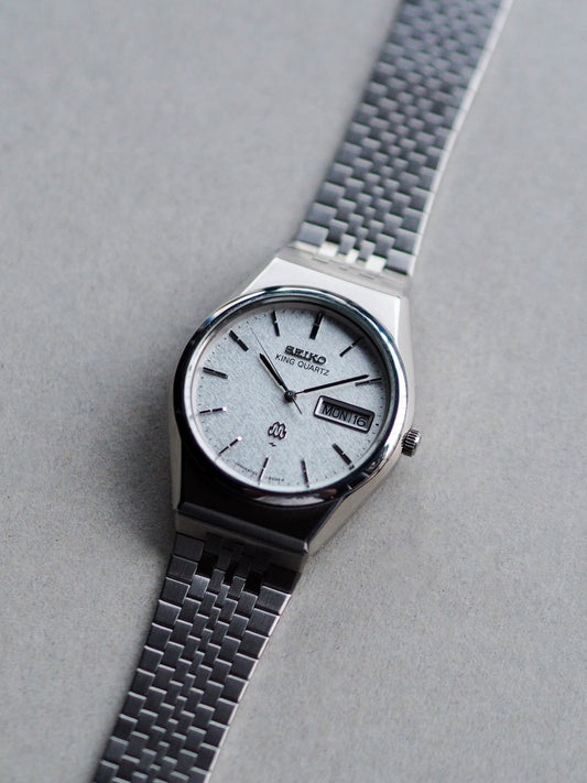 Seiko King Quartz Twin Quartz 9923-7010 White Bamboo Textured Dial