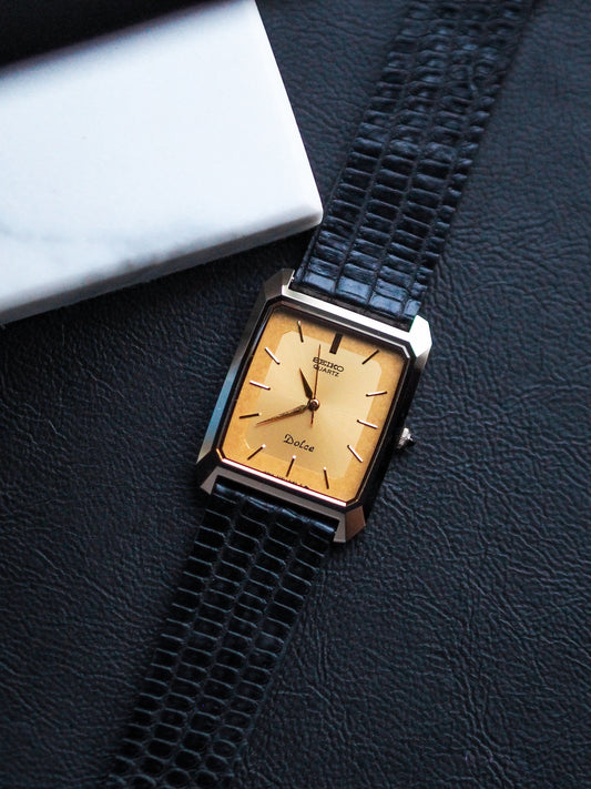 Seiko Dolce 9531-5140 Tank Tungsten Carbide Champagne Textured Dial
