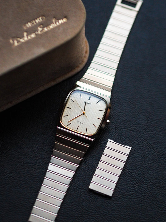 Seiko Dolce 7731-5160 Quartz Tank Tungsten Carbide Champagne Textured Dial