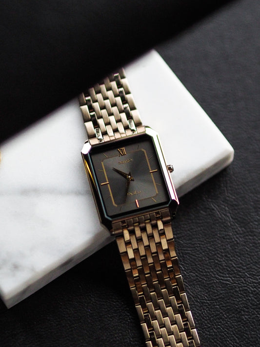 Seiko Dolce 9531-5160 Tank Tungsten Carbide Champagne Pinstripe Dial