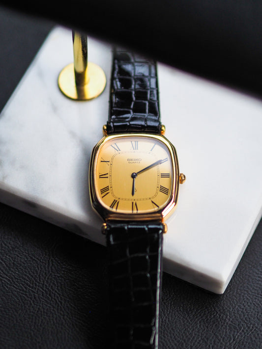 Seiko Dolce 8N41-5070 Tank Tungsten Carbide Gold Brushed Dial